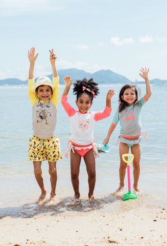 Nos maillots de bain offre une protection UPF50+ et sont conçus selon les dernières tendances avec des couleurs et logos plein de vie pour apporter de la gaieté et pour que l'été soit plus amusant !
